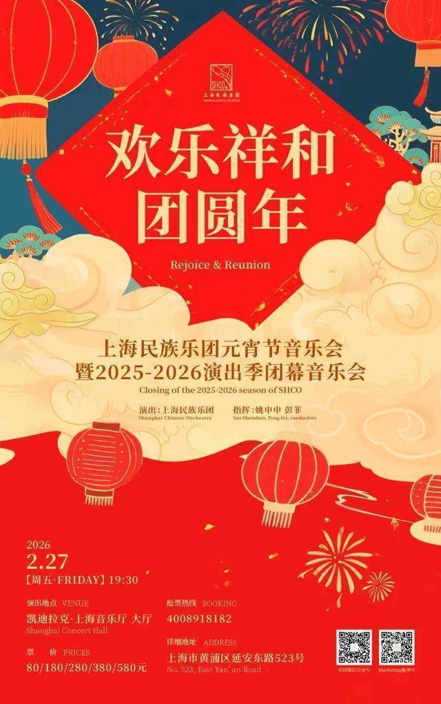 2月27日(正月十一)晚,乐团将在上海音乐厅献上《欢乐祥和团圆年》元宵节音乐会,这也是乐团2025-2026演出季的闭幕音乐会,由驻团指挥姚申申、彭菲联袂执棒,邀观众共赏一轮“音乐明月”,在欢乐祥和的国乐声中,为演出季画上圆满句号,共迎美好团圆年。